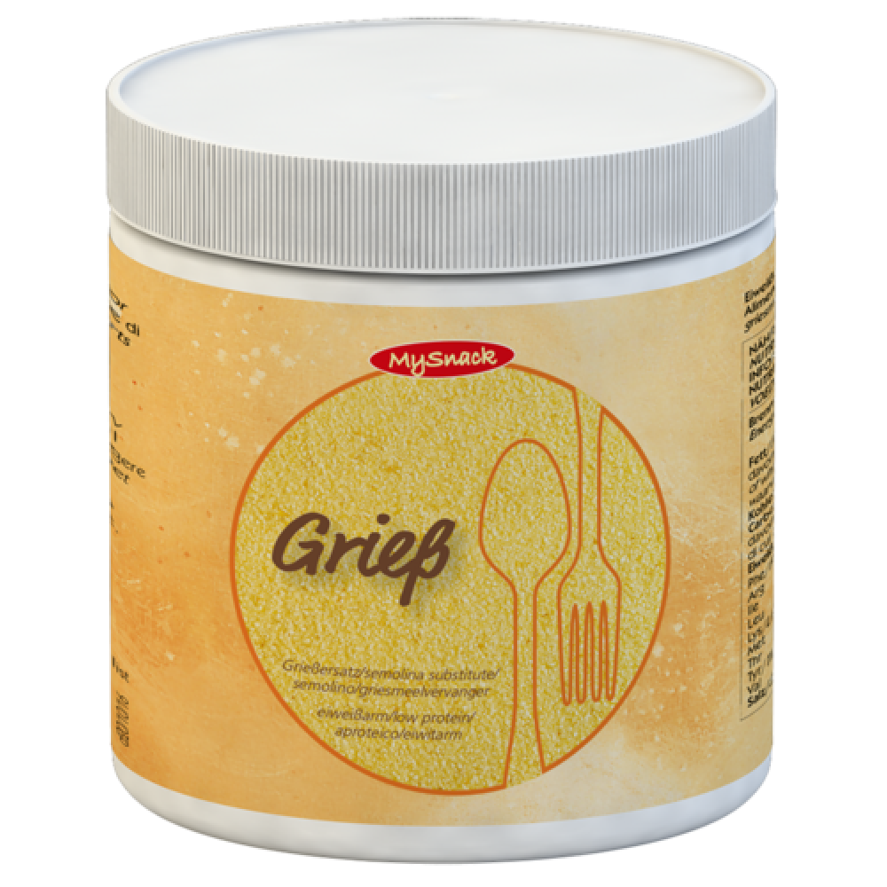 Eiwitarme griesmeelvervanger op zetmeelbasis in premium plus kwaliteit. Karakteristieke goudgele kleur, fijne korrel, gegarandeerd geen plakken of klontjes.